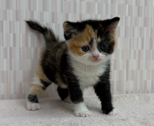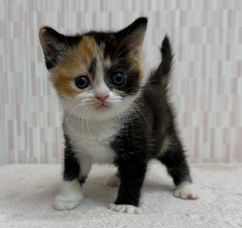 | ご紹介 | 短足・三毛の夢々ちゃんのベビーを紹介します。 三毛猫ファンの方にぜひオススメしたい子猫ちゃん! 只今予約受付中! 早めの見学は大歓迎です! (パパ&ママ情報) |