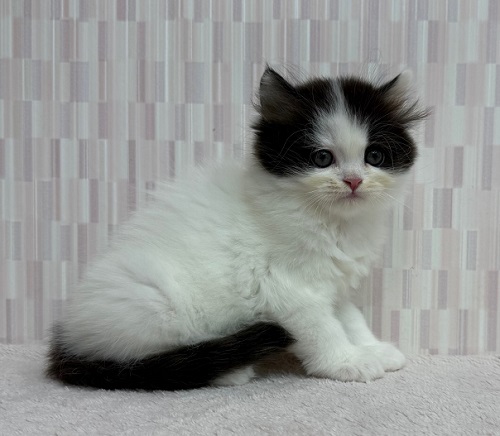 口周りの黄色はママのミルクの色(ミルク焼け)なので離乳が終わると白くなり、今ブルーに見える瞳の色は少しずつゴールドに変化します。