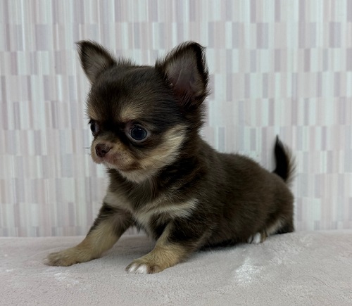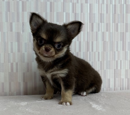 | ご紹介 | 人気のカラーのチワワちゃんが入舎しました。 とても綺麗なお顔立ちの女の子です。 (パパ&ママ情報) パパ・・・チョコレートタン&ホワイト(2.5㎏) ママ・・・チョコレート&タン(2.6㎏) 父犬→PRA(進行性網膜萎縮症)遺伝子検査クリア |
